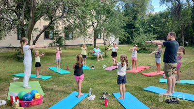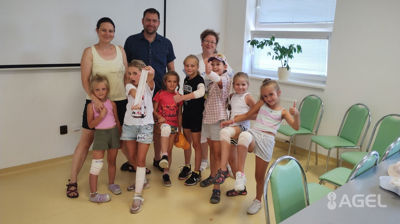 Návštěva fyzio ambulance - jak správně sedět u stolu, jak nosit batoh, jak se během dne protahovat, aby tělo dobře fungovalo – rozcvička s fyzioterapeuty, cvičení u žebřin; jak předcházet úrazům - prevence; úkoly a tvoření související se zdravě fungujícím tělem; odpoledne návštěva krytého bazénu (v případě dobrého počasí koupaliště)